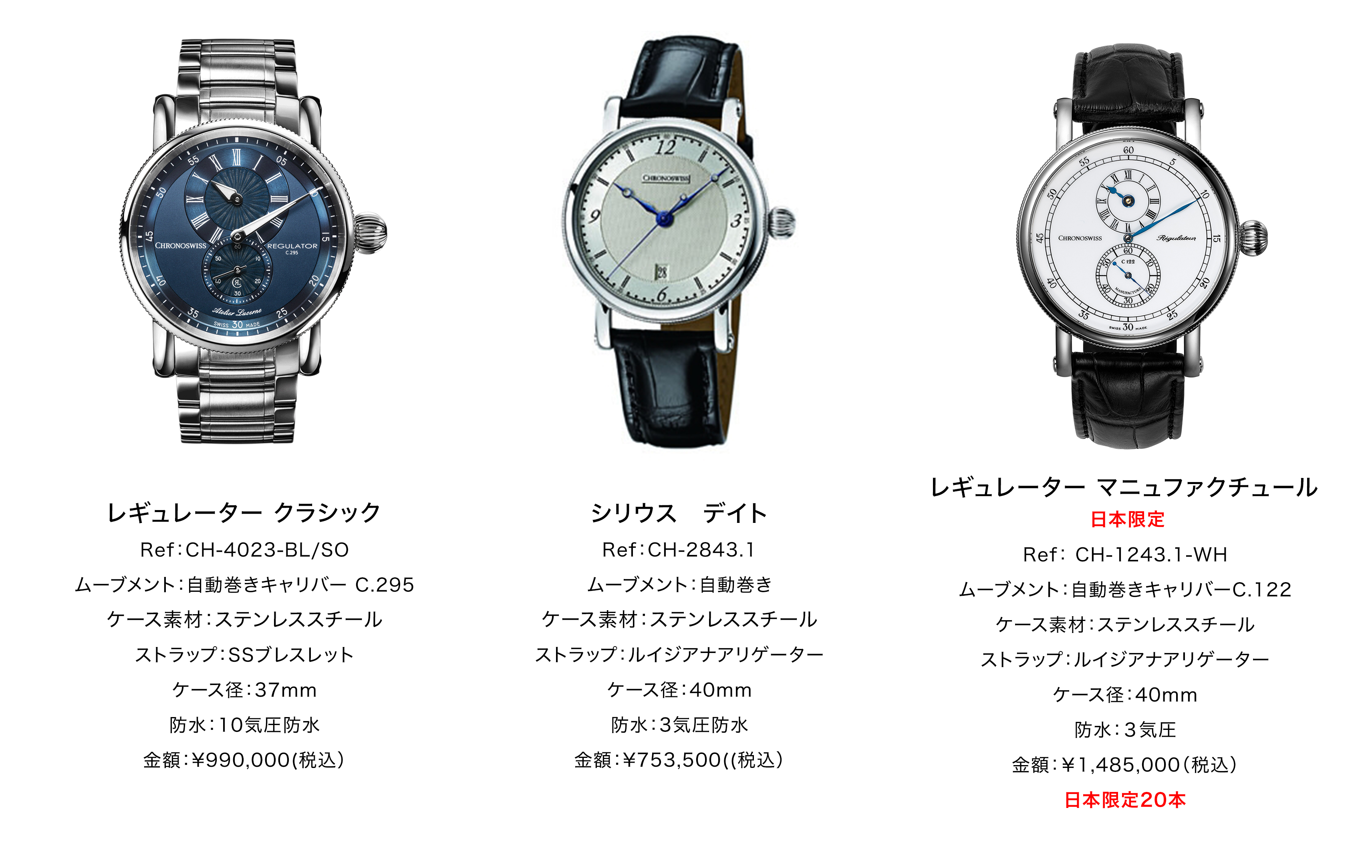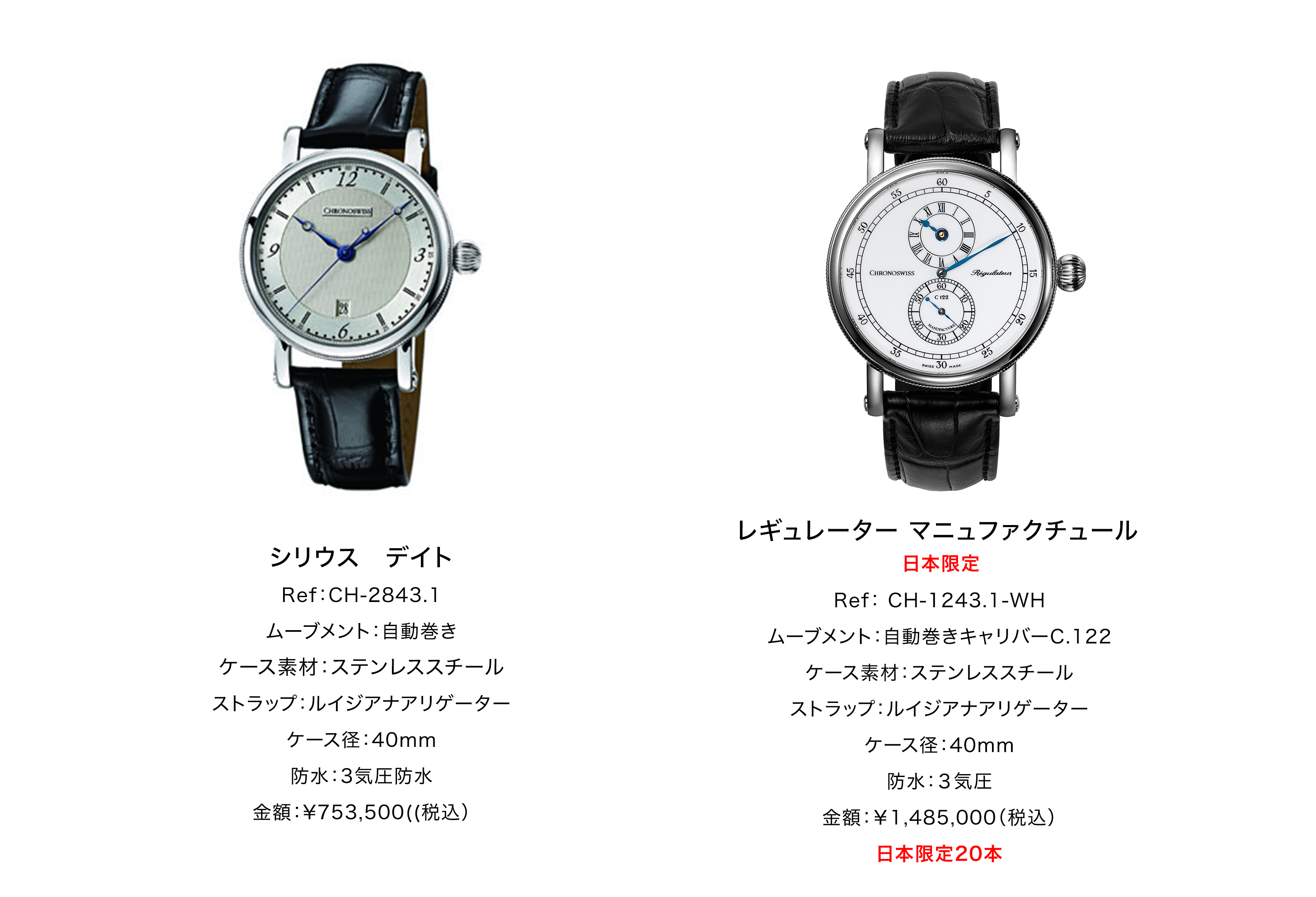 1F特設会場にて下記の商品をお買い上げのお客様には日本国内では流通の少ないCHRONOSWISS本国のスイスワインをプレゼントいたします。