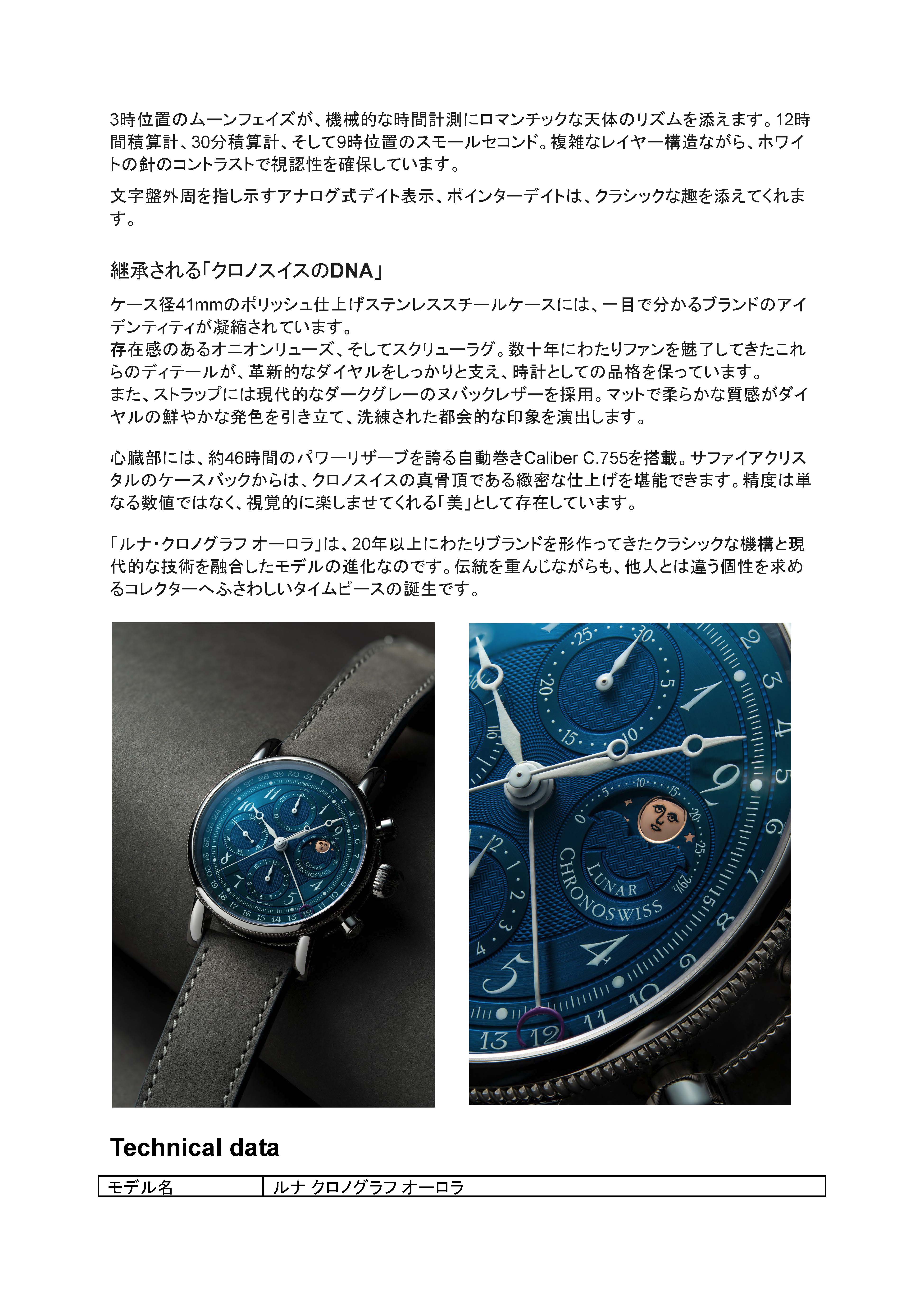 「ルナ クロノグラフ オーロラ」プレスリリース