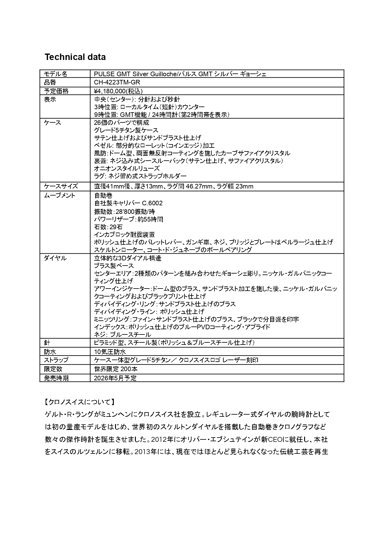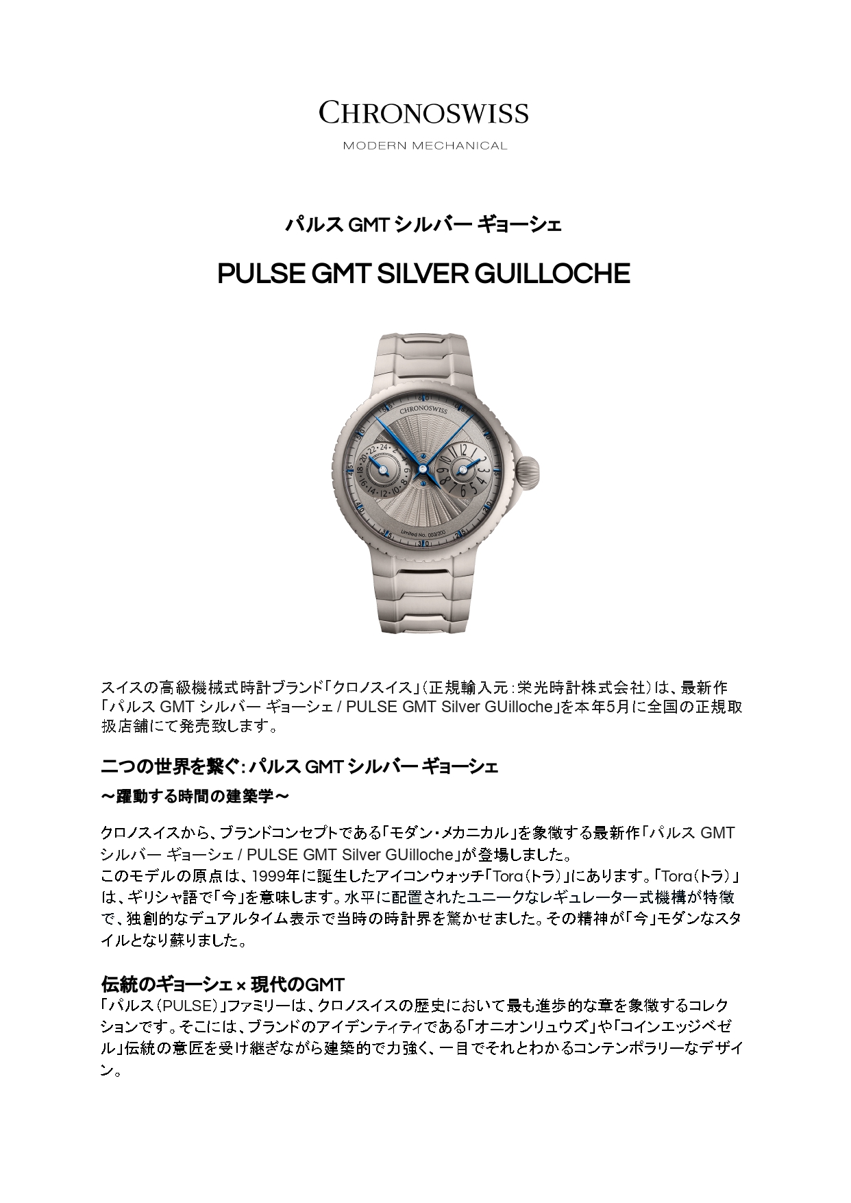 「パルス GMT シルバー ギョーシェ」プレスリリース